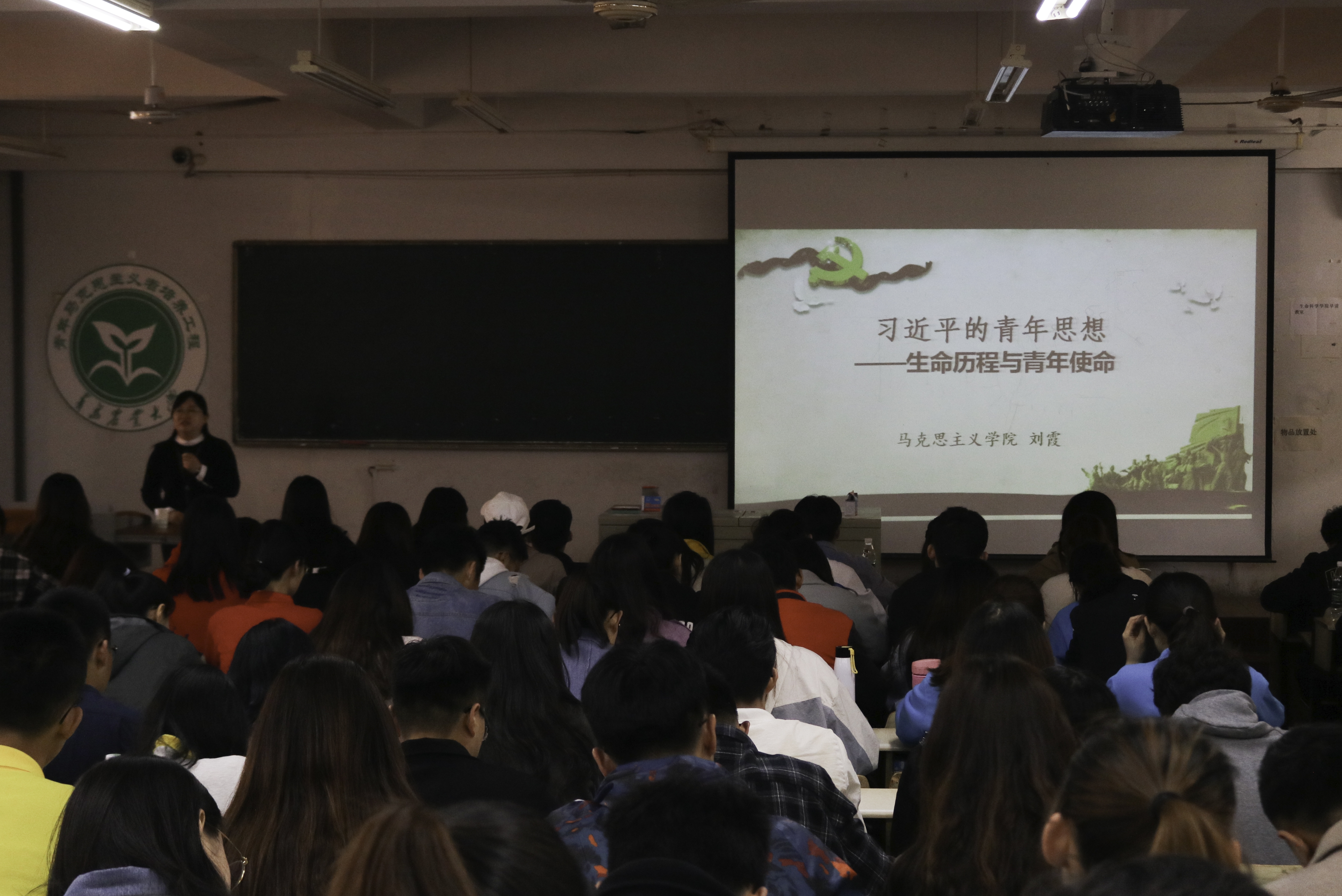 通过分享习近平总书记的七年知青经历,围绕“生命历程与青年使命”主题,刘霞对习近平的青年思想进行生动形象地解读。对“新时代青年如何更好地成长成才”等课题,她引用习近平青年思想主要内容作答:一要有“与时代同步”的青年发展定位,二要走“知行合一”的青年发展路径,三要树立“以人民为中心”的青年发展目标,四要进行“打铁必须自身硬”的青年组织建设。结合个人研究方向,她还向同学们传授了家庭社会学等方面的知识,普及了家庭生命周期理论知识。