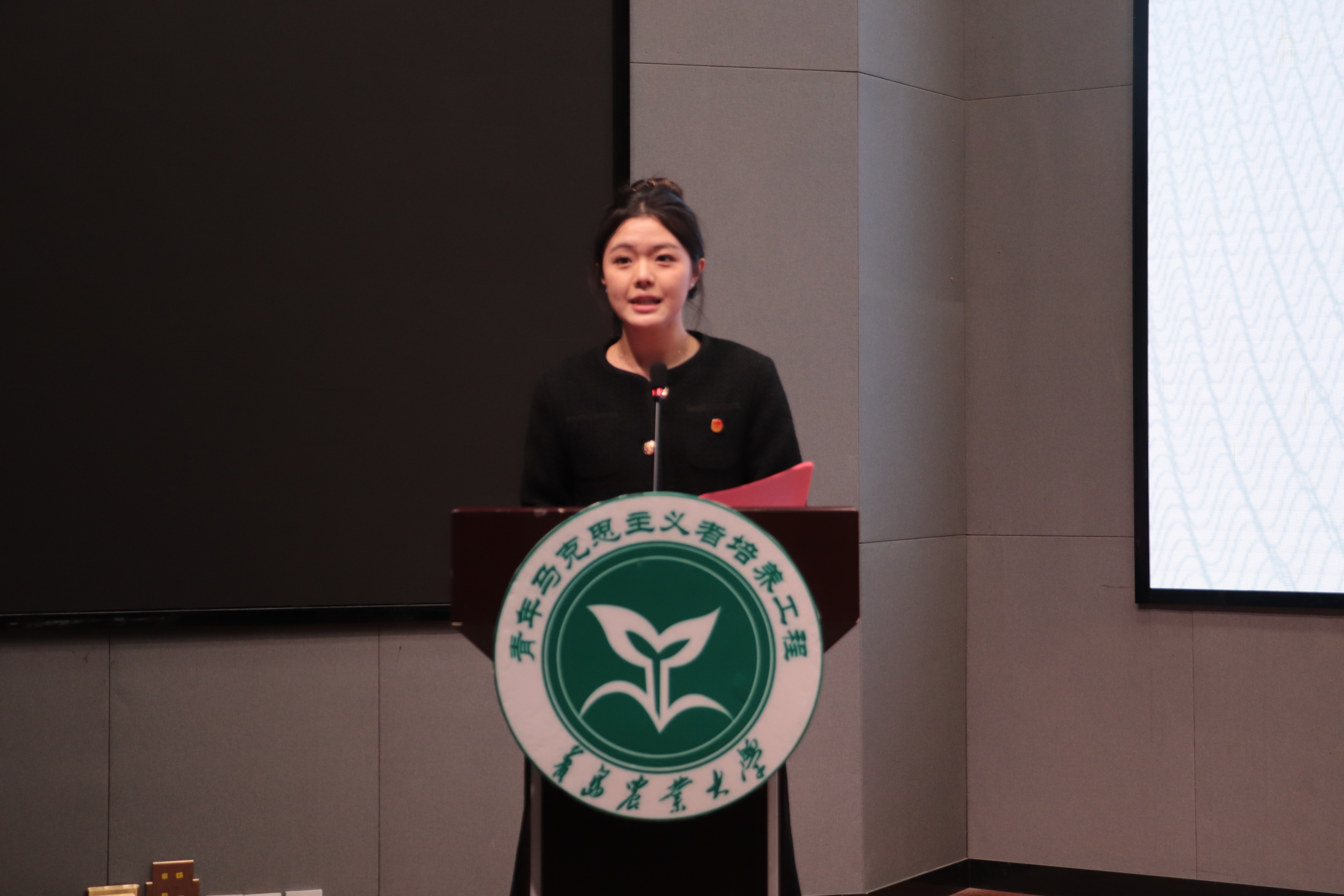 校“青马工程”2025级团支书班学员代表吴雨馨发言,表达了做马克思主义坚定信仰者、实干担当践行者的决心,与全体新学员共勉将小我融入大我,以信仰为帆、实干为桨践行青春使命。
