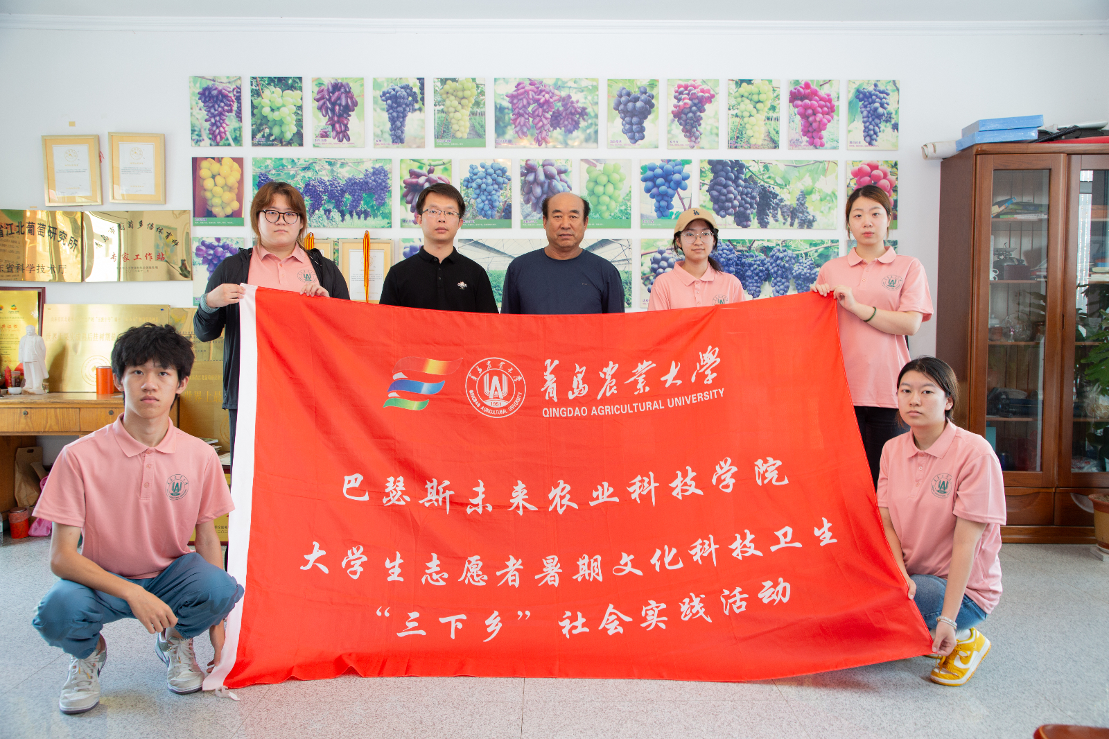 巴瑟斯未来农业科技学院“链动三产,果际四海”实践团队赴青岛平度开展社会实践,团队成员深入种植园、合作社及企业,针对葡萄种植端人才短缺、加工端产业链短、销售端国际市场窄等痛点,依托农学、食品、资环、物流全产业链专业优势及中外合办资源,从种植、加工、销售、品牌多维度发力,提出标准化种植提升、多元销售拓展、品牌塑造强化等方案,为平度葡萄产业发展注入动力。生命科学学院“科技小院架桥,青年调研破题——葡萄种苗升级驱动青岛特色产业延链增值”社会实践队赴莱西市产芝村调研,团队成员针对部分葡萄园存在霜霉病、白粉病蔓延,排水不畅致烂根风险、日灼病影响生长等问题,与种植户深入交流,了解日常管理难题,为推动产业兴旺、农民富裕提出建议对策。经济管理学院(合作社学院)黄山农韵探研组赴崂山区黄山村调研乡村发展情况,了解到当地茶叶种植业存在条件制约,旅游业面临发展瓶颈,同时以海蜇加工为特色渔业正处于向规模化生态养殖转型与深加工融合的攻坚发展期。团队为村支部提供了深化产学研合作、吸引返乡创业、流转茶田、开发多元旅游文化产品等切实可行的建议,得到当地负责人高度认可。草业学院“立草立业”实践团先后前往青岛鲁滨草种业科学研究院胶州种质资源与育种基地、青岛莱西四季青草坪基地参观学习,团队成员在专业老师带领下深化守护种质资源“芯片”认知,深入草坪生产一线调研牧草加工转化与市场流通体系,了解林下经济模式的优越性,践行草产业链的高质量发展、可持续发展理念,立志“立草立业,矢志三农”。食品科学与工程学院“红樱跃质,践梦兴农”调研实践团走进崂山北宅樱桃园,通过与种植户面对面访谈、发放调查问卷,了解了樱桃的种植规模、品种特性及日常管理情况,深入分析其在市场竞争、产业升级需求以及销售渠道等方面所面临的挑战,为北园樱桃产业发展建言献策。植物医学学院“青衿植志”实践服务团走访青岛涉农企业,专访多位在青发展的农科校友,形成人才供需报告、挖掘留青人才故事、搭建数字化对接平台,为农科同学们职业规划及留青发展提供帮助,助力其扎根青岛农业,践行兴农报国理想。园林与林学院“深耕齐鲁·稼穑兴邦”调研团走进青岛市东毛家庄村,先后走访独具特色的“东篱小院”“毛家记忆”,参观棘洪滩水库文化展馆,系统学习水库“规划-建设-运行-管理”全过程,探访绿沃川农业基地,了解“物联网+农业”的运作模式和温湿度调控、水肥一体化、病虫害智能预警等技术的应用,感受现代农业创新活力。