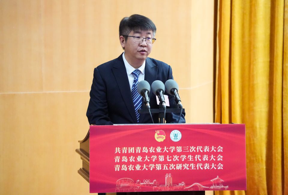校党委书记潘军代表学校党委向大会的召开表示祝贺,向长期以来关心和支持学校共青团工作的团省委、团市委以及兄弟院校表示衷心的感谢,向全校广大青年、全体共青团员、团干部和青年工作者致以诚挚的问候。潘军书记指出,第二次团代会以来,学校共青团围绕中心工作,服务发展大局,在为党育人、服务三农、科创报国、抗击疫情等实践考验中塑造了政治之魂、奋进之力、活力之源,涌现出一批优秀青春典型,荣获“全国五四红旗团委”,全国“挑战杯”竞赛特等奖、金奖、优胜杯,全国大学生“三下乡”社会实践优秀组织单位等荣誉。充分肯定了第二次团代会以来学校共青团在加强思想引领、夯实组织建设、助推青年成长、服务中心大局等方面的做法和成绩,高度认可广大团员青年为推动学校跨越发展,加快建设特色鲜明的高水平应用研究型大学所作出的青春贡献。
