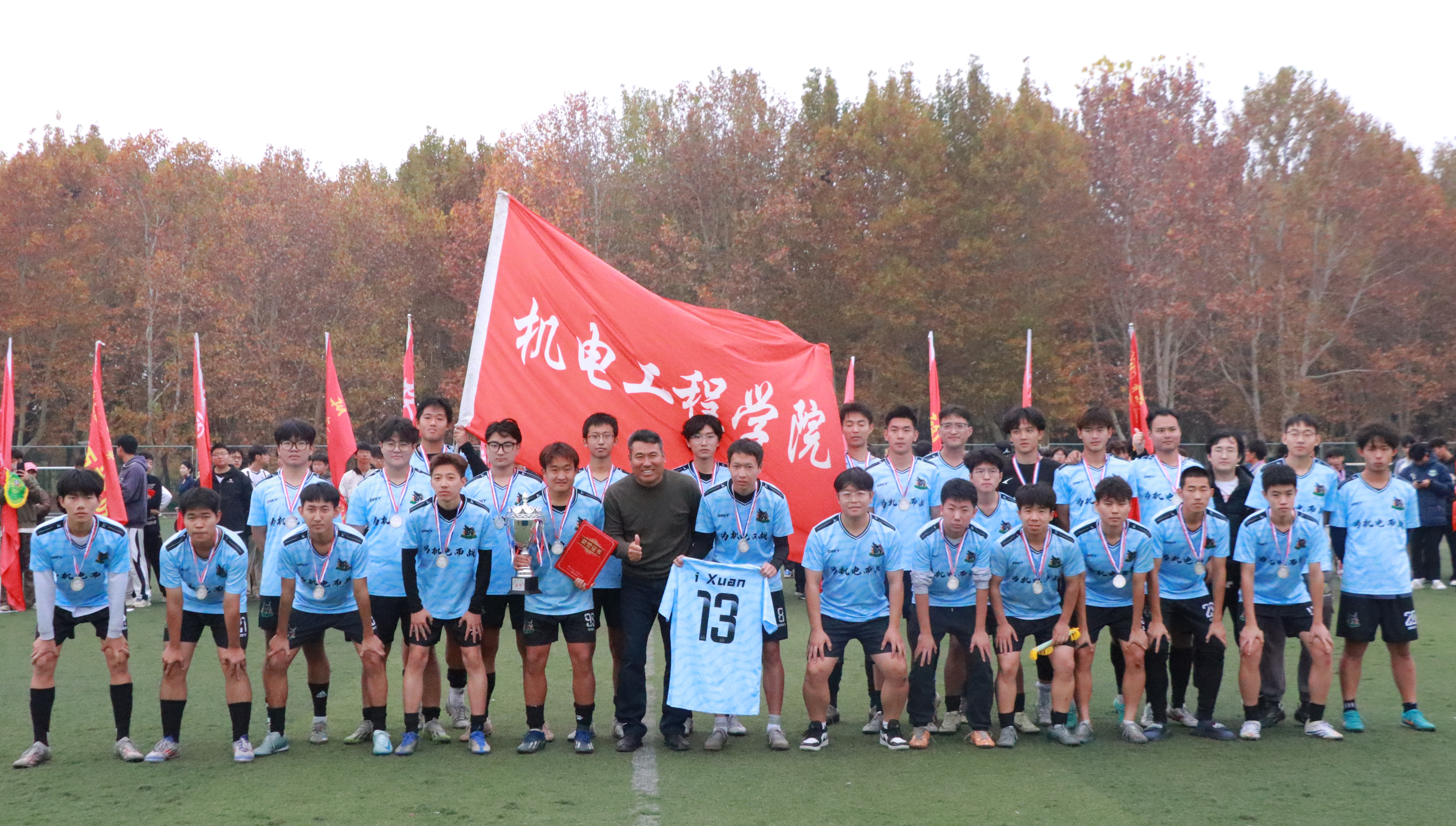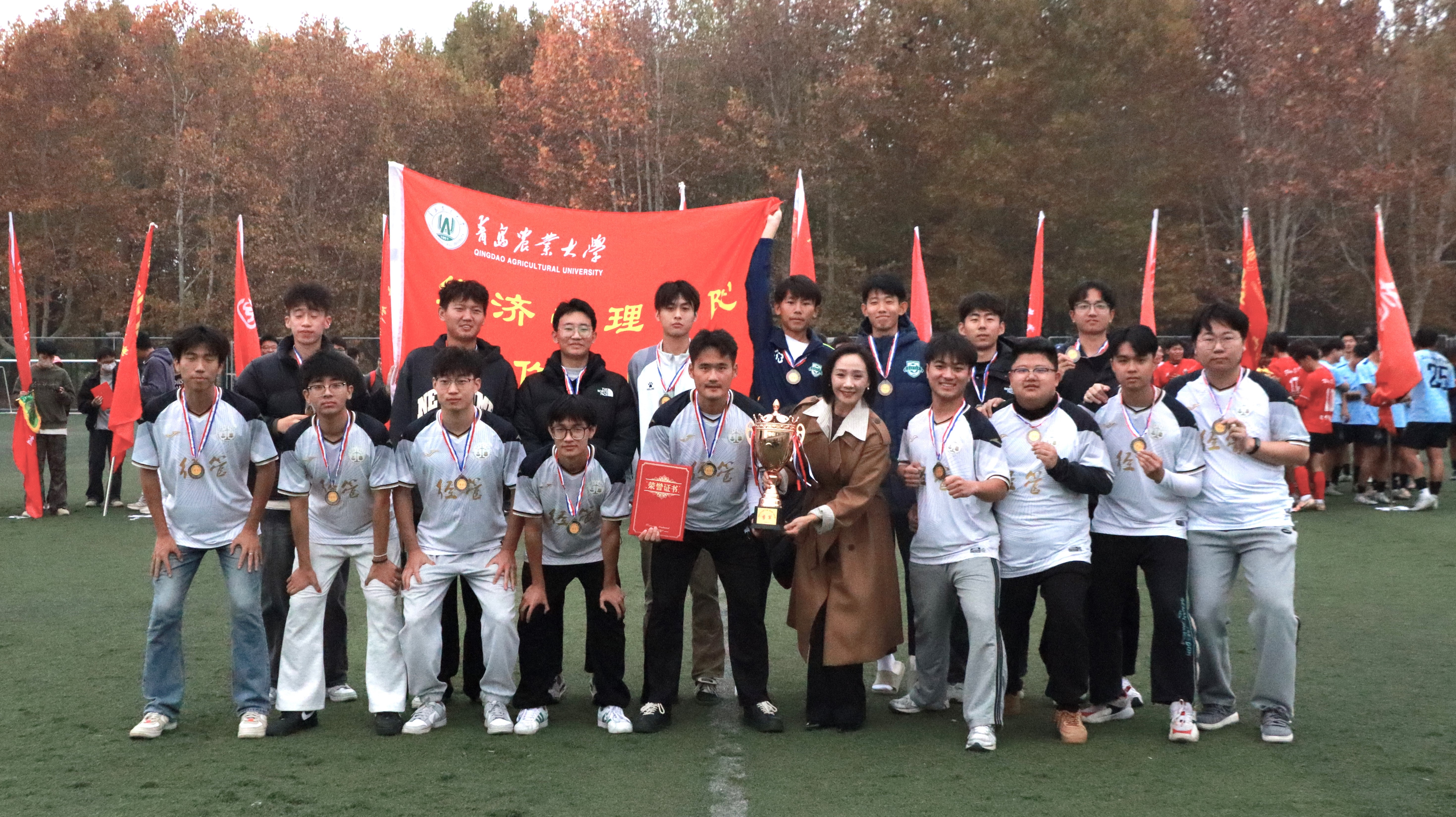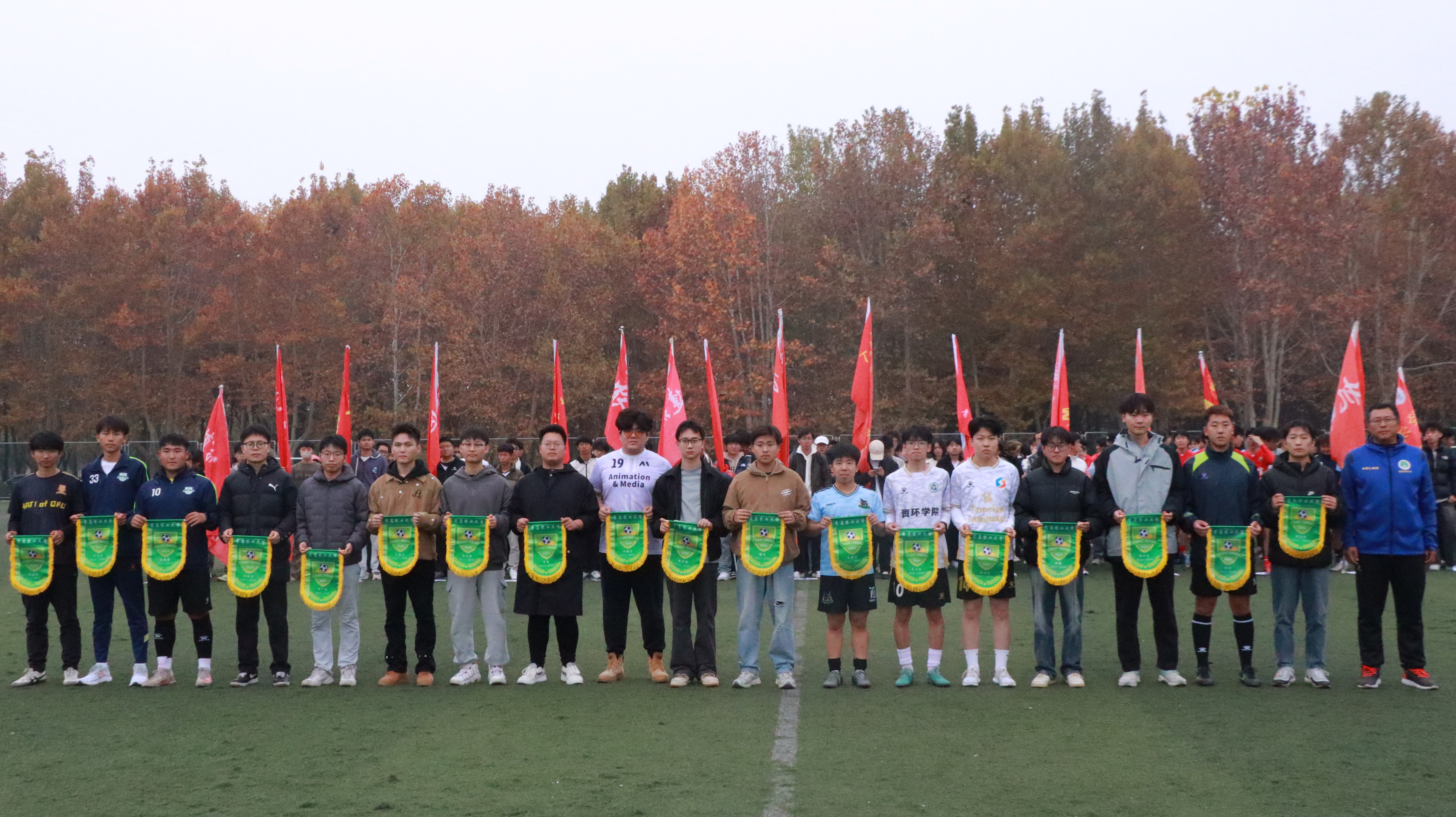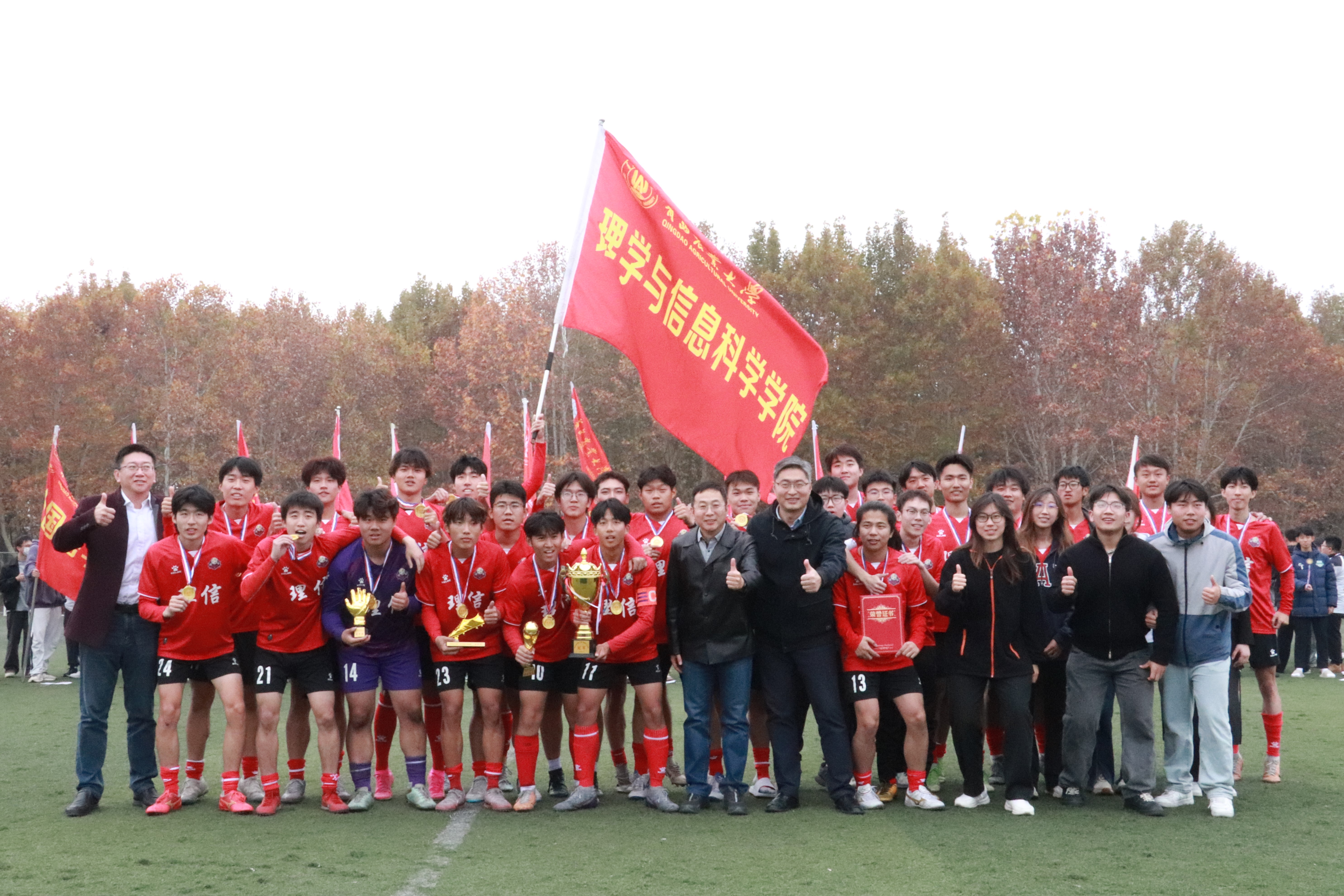 11月11日,永利3044noc集团官网第二十届“青农杯”足球赛决赛暨闭幕式在城阳校区东足球场举行。校团委、体育教学部、理学与信息科学学院、机电工程学院负责同志及各学院代表队参加了闭幕式。入围冠亚军争夺赛的理学与信息科学学院代表队和机电工程学院代表队经过激烈对战,最终以理学与信息科学学院3:1获胜,夺得冠军。