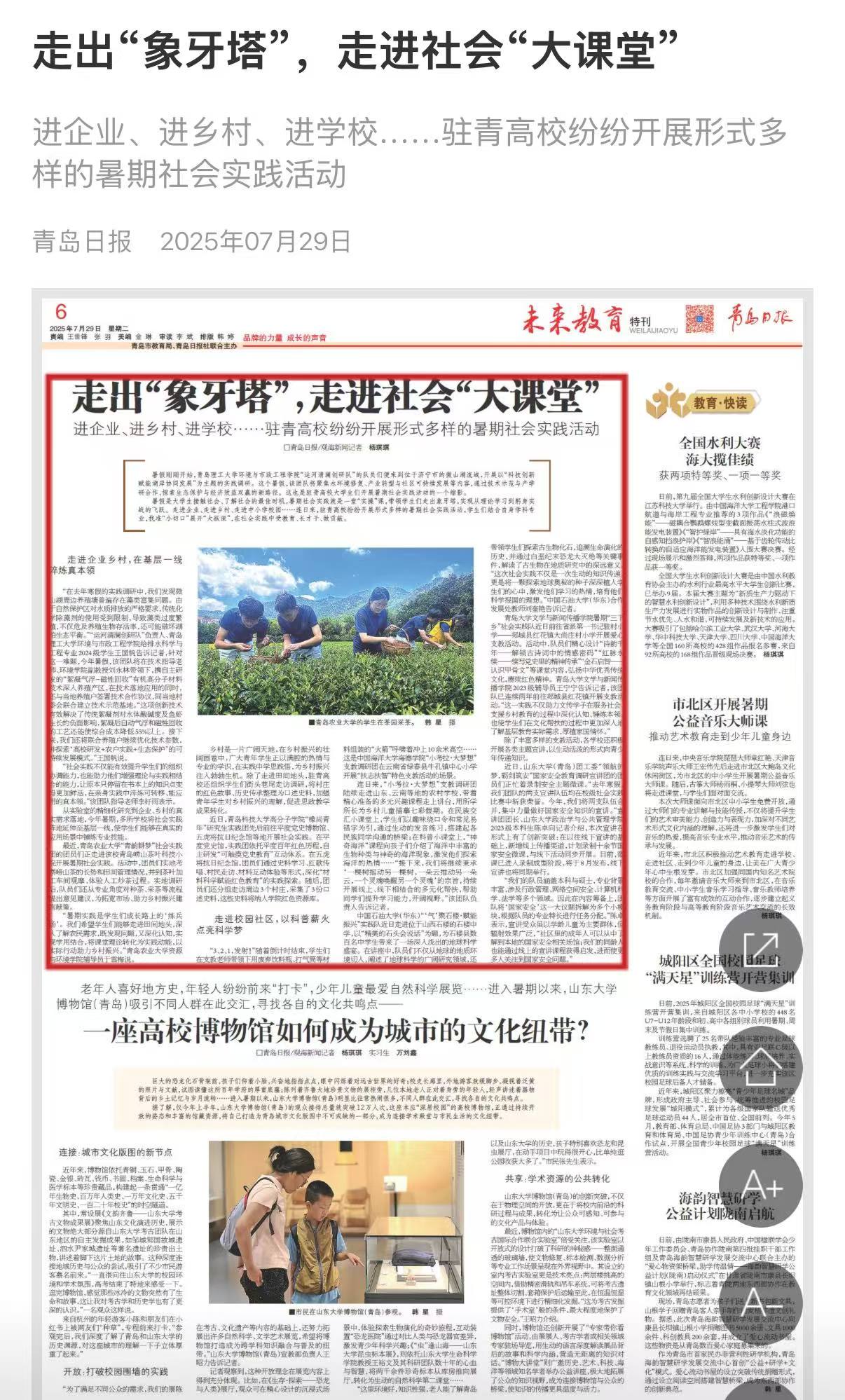 报道链接:https://epaper.guanhai.com.cn/conpaper/qdrb/h5/html5/2025-07/29/content_144595_2455768.htm?curr=