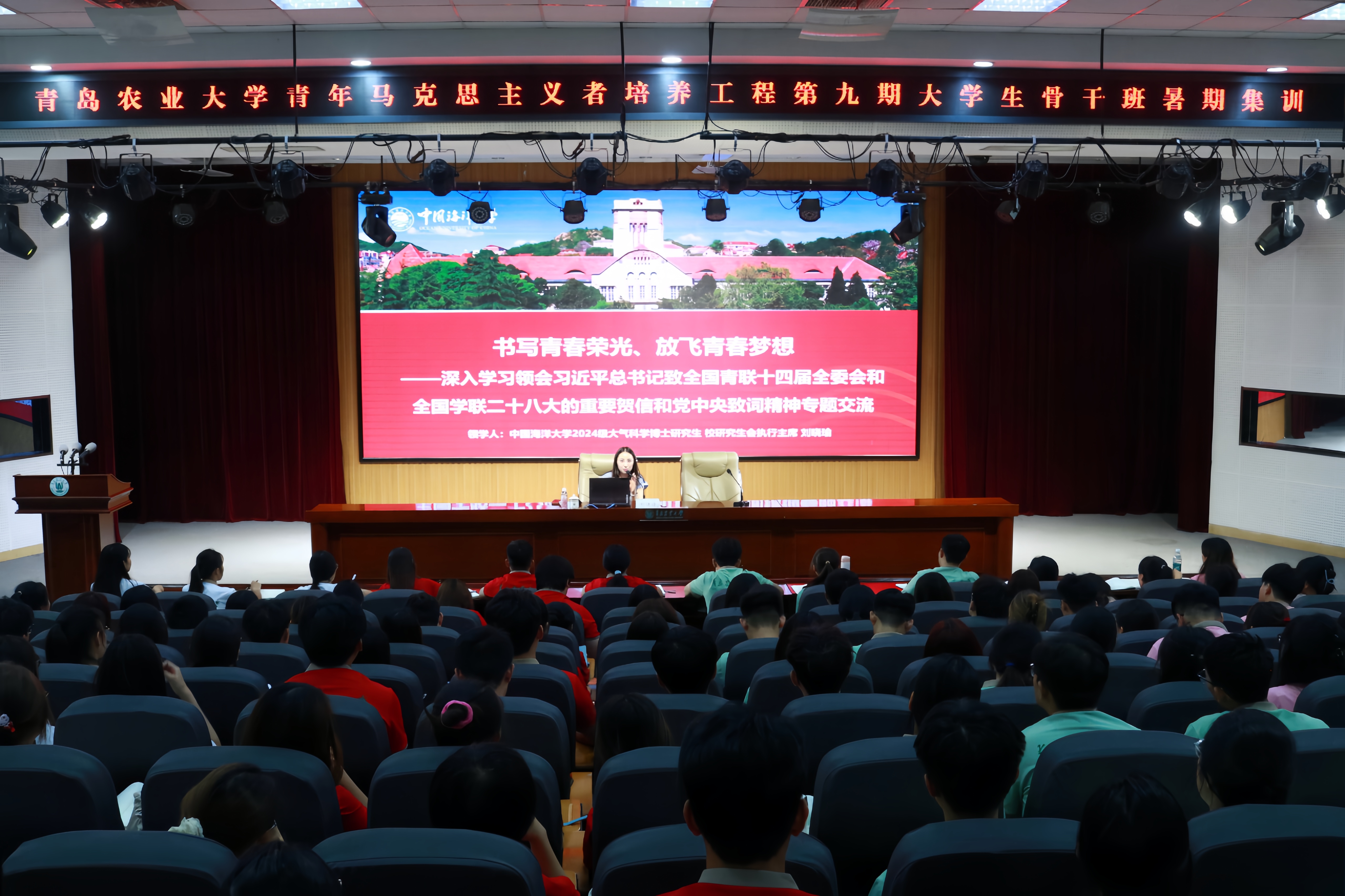 本次培训通过全国学联代表面对面、专题讲座及朋辈分享等形式,引导广大学院进一步明确肩负的时代使命和奋斗方向。全国学联二十八大代表、中国海洋大学博士研究生刘晓瑜,以《书写青春荣光、放飞青春梦想——深入学习领会习近平总书记致全国青联十四届全委会和全国学联二十八大的贺信及党中央致词精神专题交流》为题,聚焦“党领导的青年组织怎么凝聚青春力量”“新时代青年怎么在学联平台上成长”等问题,分享了学习习近平总书记贺信的心得体会,鼓励学员们牢记嘱托,更好地发挥“服务同学、引领青年”的青春责任。2024年山东省拔尖选调生、2022届校学生会主席团成员、经管学院2020级校友王琛以《以青春之我,赴时代之约:大学生活与职业发展的双向奔赴》为题,结合自身学业成长和工作经历,分享对大学生活的体悟和学生干部工作的心得体会。培训还安排了观影活动《农民院士》,学员们共同观看了农业科研工作者在基层一线扶贫扶志、带领乡亲脱贫致富的感人事迹,进一步坚定了强农兴农志向决心。