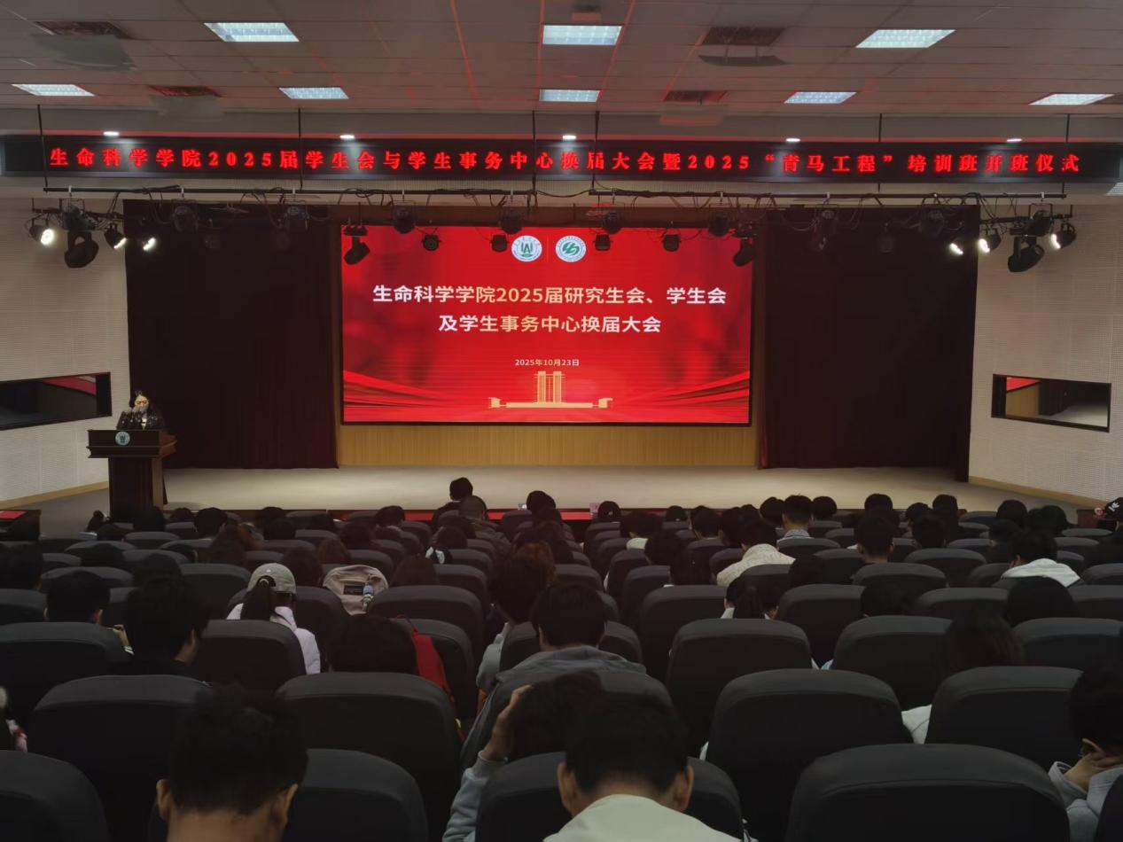 10月23日,生命科学学院2025届研究生会、学生会及学生事务中心换届大会暨“青年马克思主义者培养工程”开班仪式在学术会馆第二报告厅举行。学院党委副书记、副院长刘妍玲,团委书记王洋,辅导员王春晓、马良及全体学生干部参加会议。会议由王洋主持。