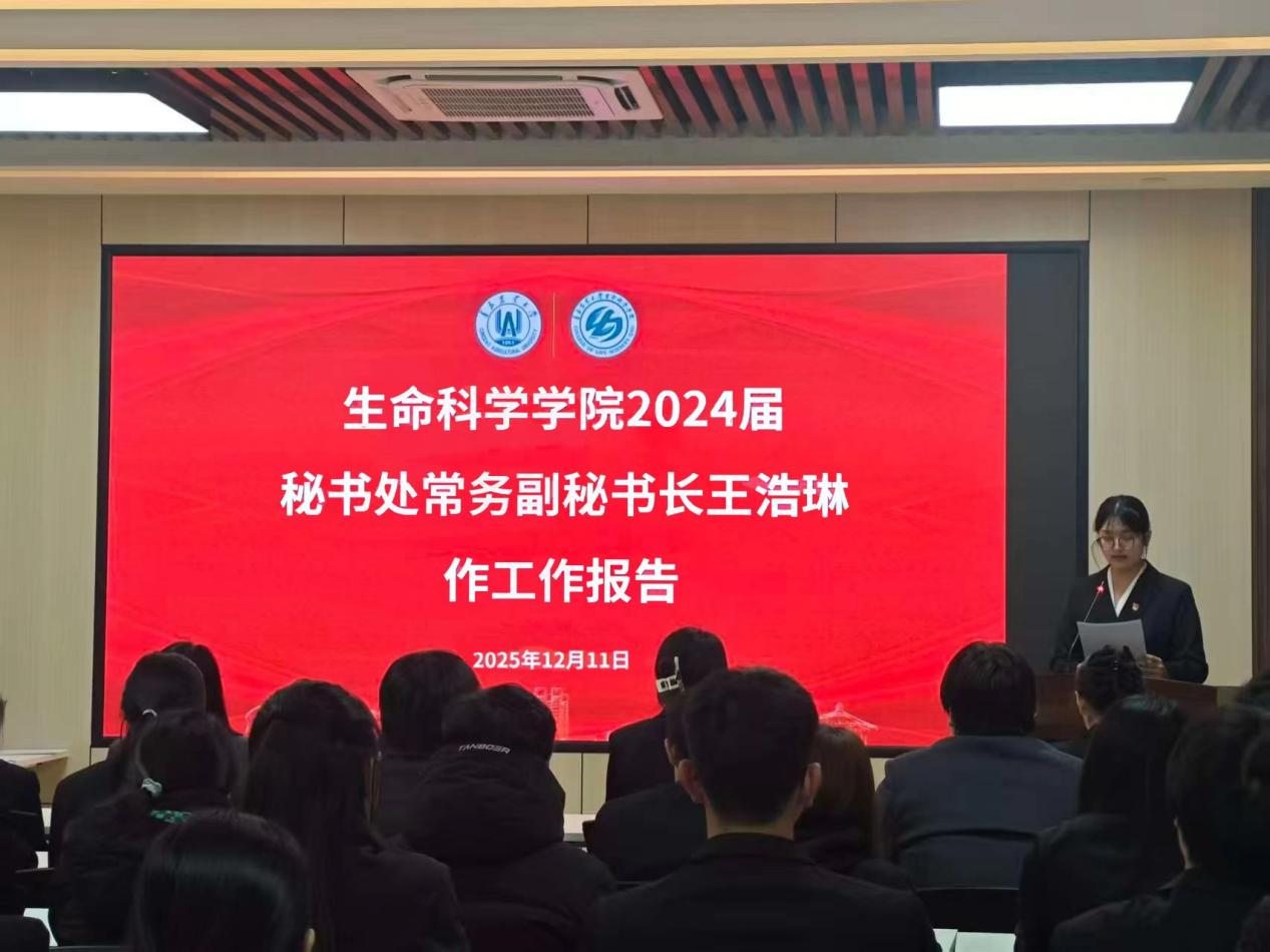 12月11日,永利3044noc集团官网生命科学学院第四次学生代表大会于生物楼C312顺利召开。学院党委副书记、副院长刘妍玲,团委书记王洋出席会议并发表致辞,学院第三届学生会秘书处常务副秘书长王浩琳作工作报告。会议由学院学生会主席团成员任照芳主持。