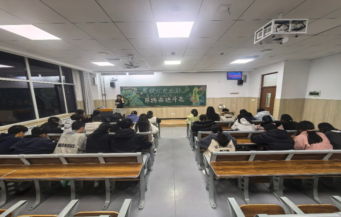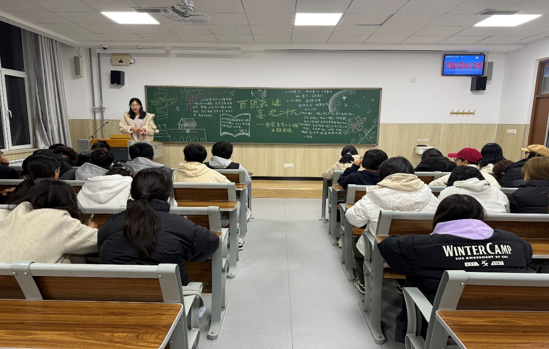 各班团课紧密围绕“青年在校园生活中的责任与担当”“青春逢盛世,奋斗正当时”“以爱国主义精神筑牢新时代青年思想根基”等主题展开,内容贴近校园生活,契合青年成长实际需求。活动中,宣讲人深入阐释团课意义,通过板报展示、口头宣讲等形式,将理论主题转化为同学们易于理解的成长分享。课程尾声,宣讲人对核心观点进行总结,并鼓励大家将所学所思融入日常校园生活。